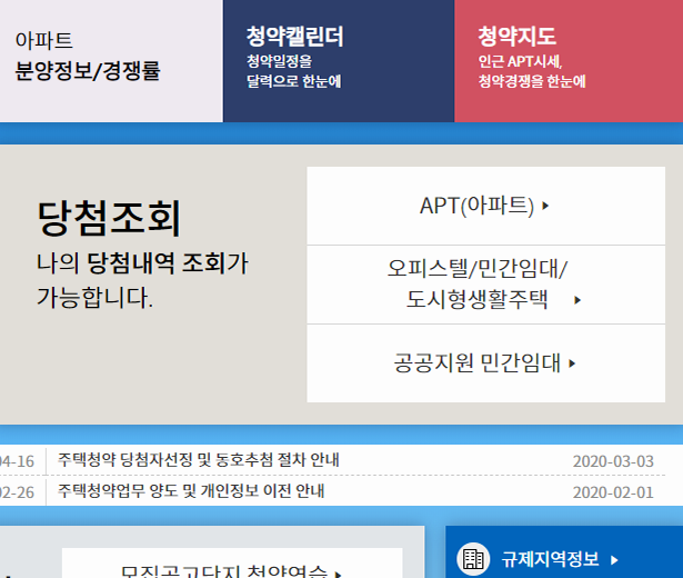 청약 홈페이지 메뉴 안내