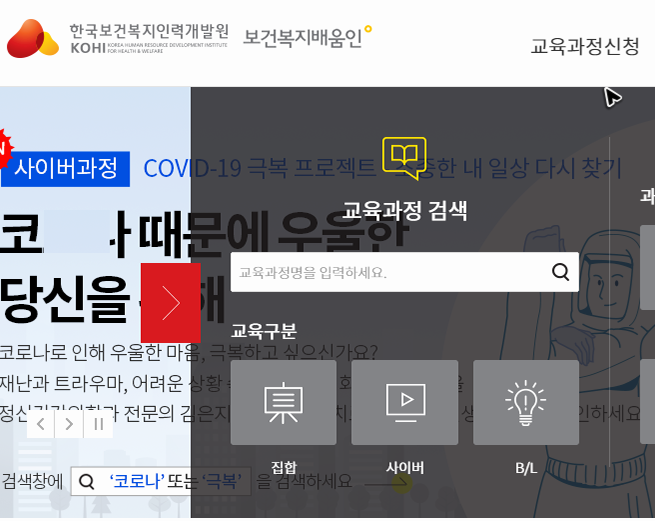 한국보건복지 인력 개발원 사이버 교육 홈페이지