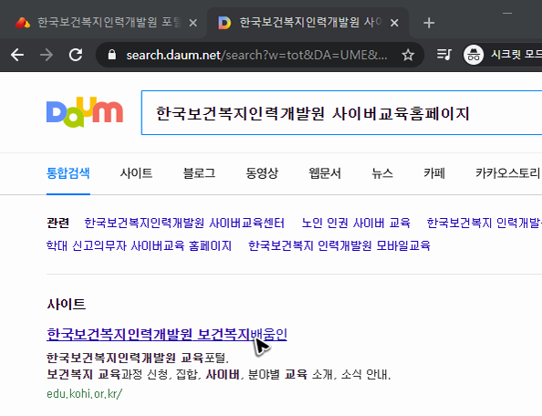 간단하게 한국보건복지인력개발원 사이버교육홈페이지 찾아가기
