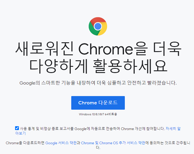 그리고 해당 사이트는 크롬 웹 브라우저에 최적화가 되어 있는데, 브라우저 최적화 문제가 생길 수도 있으니, 혹시 크롬을 사용하고 있지 않으시다면, 이번에 크롬 웹 브라우저를 설치해주시면 좋을 것 같아요. 전에 작성해둔 글이 있어서 크롬 웹 브라우저 설치는 이전 글로 설명을 대신할게요.