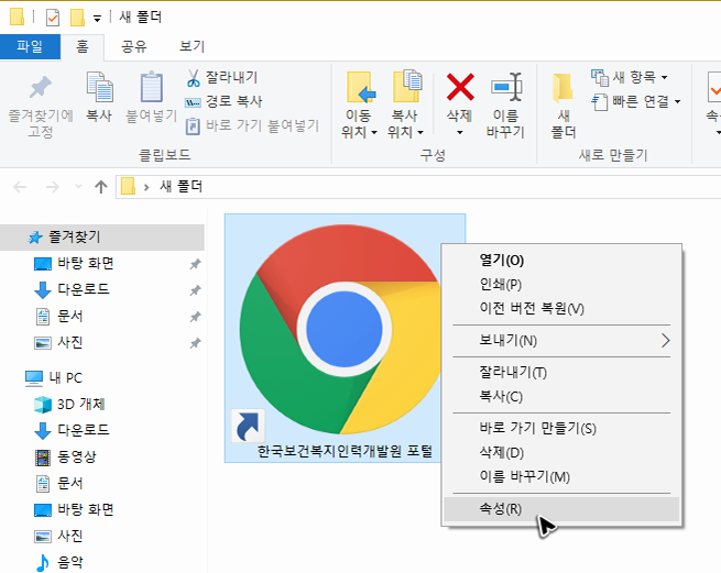 해당 아이콘은 기본 모양으로 구성이 되어 있어서 사용하는 것이 꺼려지거나 마음에 들지 않을 수 있어요. 이럴 땐 생성해둔 아이콘을 우 클릭한 뒤에 속성을 누르면 됩니다. 그럼 아이콘을 변경하는 메뉴를 찾을 수 있을 거예요. 물론 바꾸고 싶은 모양을 선택하면 됩니다. ICO 포맷이 사용되기 때문에 JPG나 PNG 등을 ICO 포맷으로 변환해서 아이콘을 변경하는 것도 가능해요.