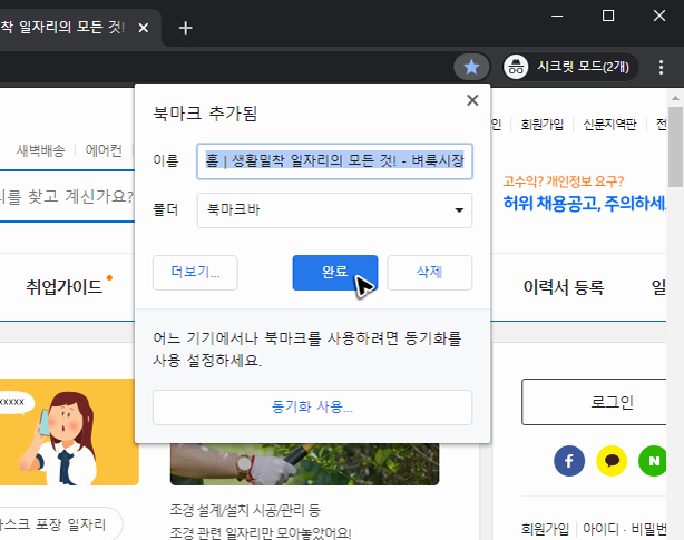 따로 아이콘을 만들어서 벼룩시장의 구인구직이나 다른 사이트를 빠르게 띄우는 방법도 있기는 한데, 북마크 설정만 알아두고 있으면 굳이 아이콘을 만들 필요는 없겠죠? 그러니 글은 이쯤에서 갈무리를 하도록 하겠습니다.
