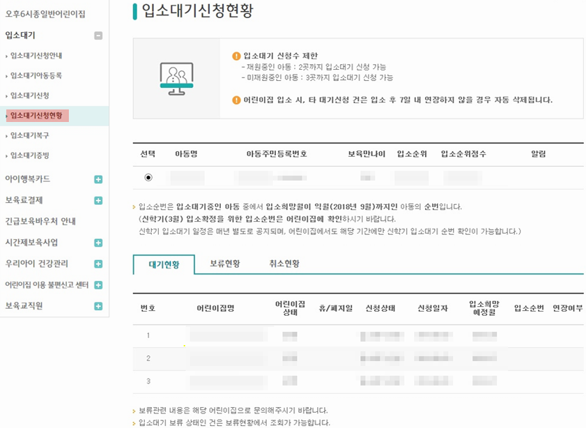 본격적인 입소대기신청과 어린이집의 선택