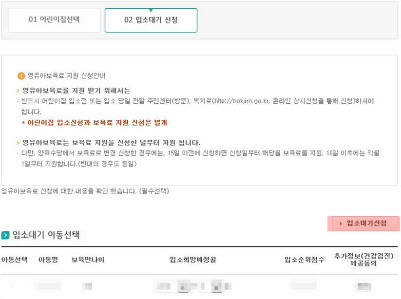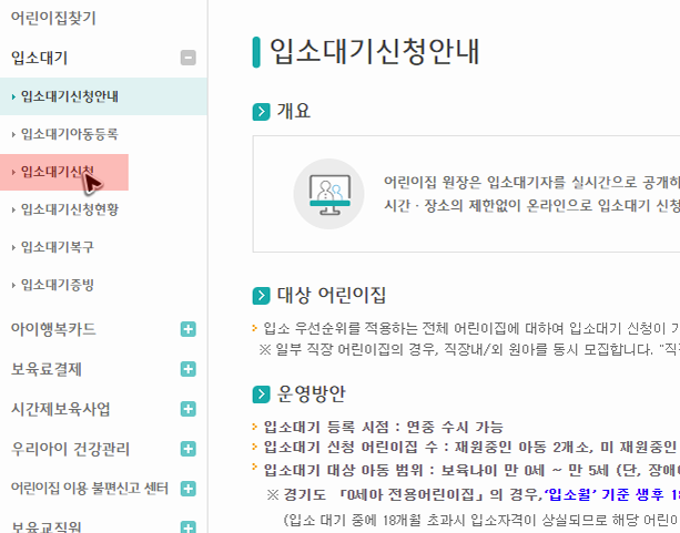 사이트에서 어린이집 입소 대기를 신청하는 방법
