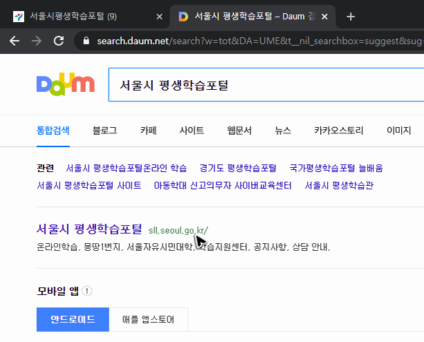 서울시 평생학습포털의 사이트 이동하기
