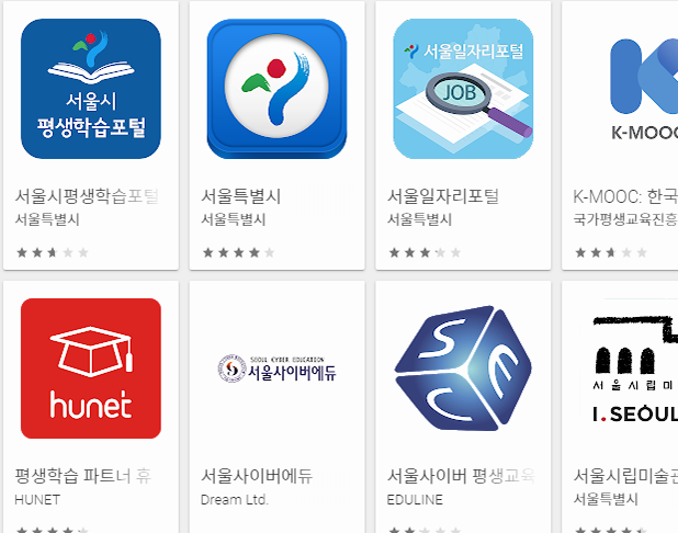 물론 사이트가 아닌 앱으로 서울시 평색학습을 찾아갈 수도 있습니다. 플레이스토어를 실행한 뒤에 서울시 학습을 검색하면 공식 어플이 나오는데, 해당 어플을 설치해서 로그인을 하면 사이트와 동일한 내용을 모바일로 교육을 받을 수 있습니다. 개인적으로는 작은 화면이 불편해서 그리 권장하고 싶은 방식이 아니지만, 컴퓨터의 큰 화면보다는 스마트기기의 휴대성이 더 잘 맞는 분들이라면 어플을 선택하시는 것이 좋을 수도 있을 것 같아요.