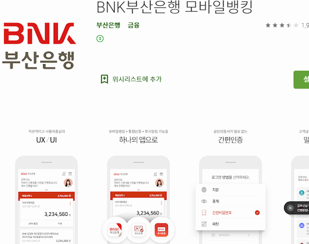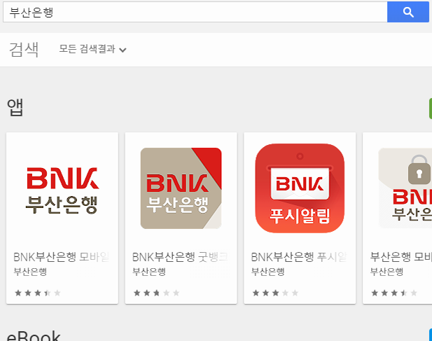 그렇기 때문에 정해진 컴퓨터에서만 부산은행의 홈페이지를 띄우고 인터넷뱅킹을 하는 것이 아니라면, 오히려 휴대성이 좋은 어플을 쓰는 것이 좋을 수 있어요. 어플은 기기에서 플레이스토어를 열고 부산은행을 검색하면 찾을 수 있습니다.