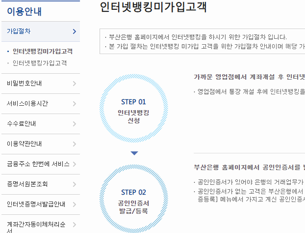전반적인 부산은행의 인터넷뱅킹 홈페이지 이용 방법