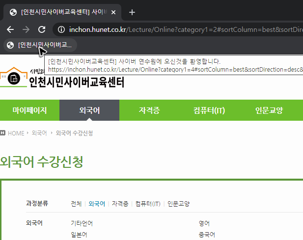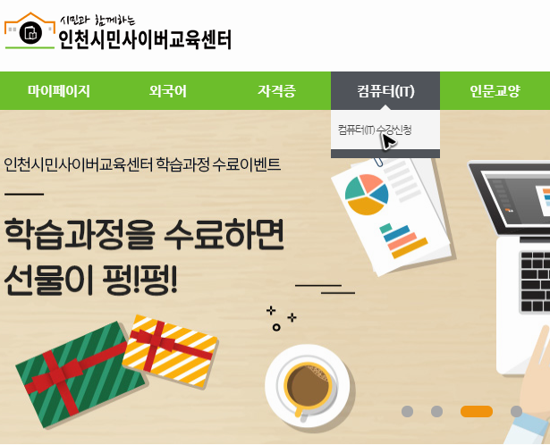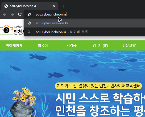 인천시민 사이버교육센터의 강좌를 듣기 위한 사이트