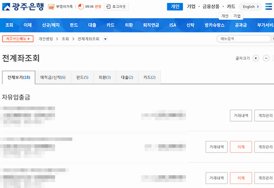 사이트에서 지원해주고 있는 기능은 단순히 통장을 확인하고 계좌 이체를 하는 정도가 아니라 새로운 금융상품을 알아보고 등록하거나, 보다 세분화된 기능들을 확인할 수 있습니다. 제공하는 서비스의 종류가 많아서 제가 하나씩 정리해두는 것은 아무래도 어려움이 있습니다만, 애초에 필요한 메뉴를 찾아서 클릭한 뒤에는 페이지에서 요구하는 정보를 입력하면서 안내에 따라 몇 가지 과정만 진행하면 되니, 특별히 광주은행을 이용하는 것이 어렵거나 까다롭지 않을 거예요.