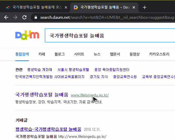 빠르게 국가평생학습포털 강좌가 있는 페이지 띄우기