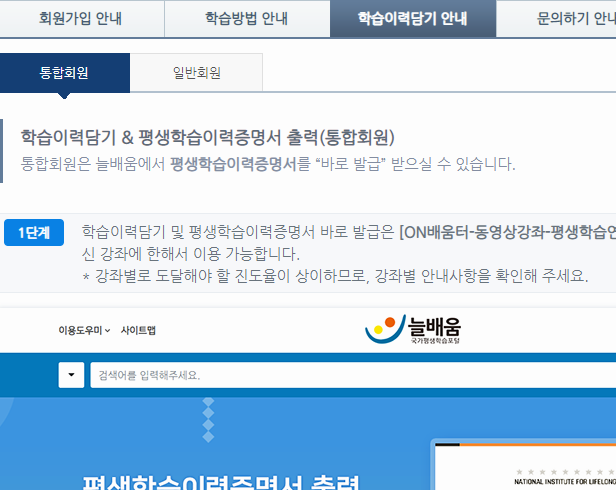 가이드 메뉴를 누르면 학습방법에 대한 안내와 이수한 이력, 문의하는 방법 등, 사이트 이용과 관련된 전반적인 과정들을 살펴볼 수 있습니다. 제가 어설프게 설명하는 내용들을 살펴보고 국가학습포털을 사용하시는 것보다는 공식 안내 정보를 확인한 뒤에 국가평생학습포털 늘배움을 활용하시는 것이 더 깔끔할 것 같아요.