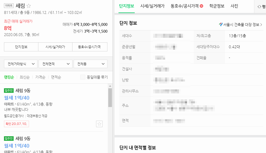 항목을 클릭하면 화면 왼쪽에 새로운 영역이 띄워질 거예요. 시세와 실거래가가 보이고, 공시가나 기본적인 단지 정보들도 확인할 수 있으니, 둘러보시면 될 것 같습니다!