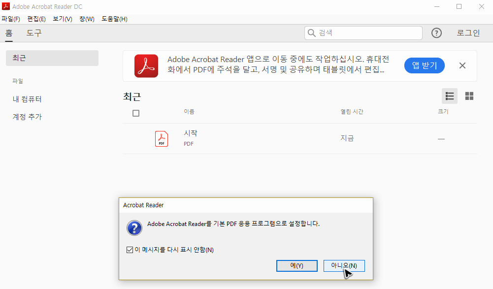 공식 Adobe에서 pdf 뷰어의 다운로드를 하는 방법