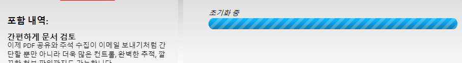버튼을 누르면 다른 페이지로 연결이 되면서 뭔가를 초기화한다는 내용이 나올 거예요. 저도 여기에서 어떤 부분을 초기화한다는 것인지는 잘 모르겠지만, 그냥 기다리고 있으면 pdf 뷰어의 설치 파일이 받아지니, 기다리고 있으면 됩니다.