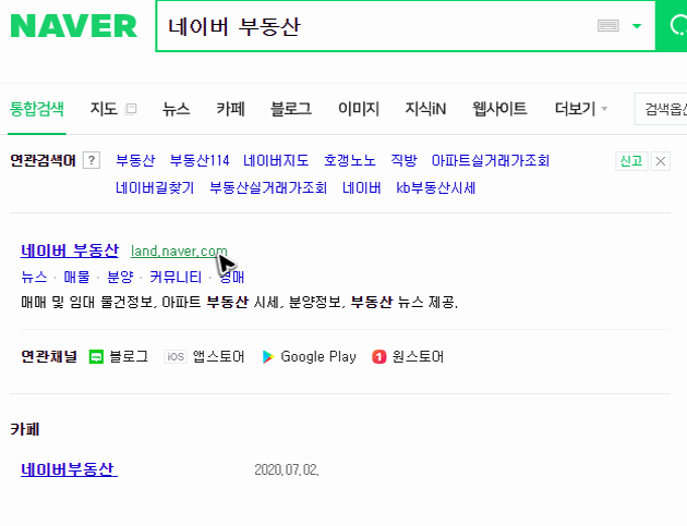 저는 주로 KB와 함께 네이버 부동산을 둘러보는 편이라 네이버에 대해서만 조금 더 얘기를 해볼게요. 앞서 kb부동산 리브온 시세를 확인할 때와 마찬가지로 사이트를 찾아가는 것이 우선입니다. 검색하거나 주소창에 [land.naver.com]를 입력해서 사이트 이동을 해주세요.