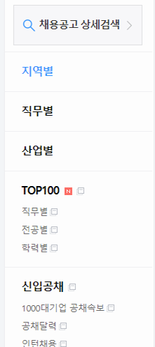 카테고리 메뉴를 누르고 상세 페이지로 이동하면 왼쪽과 위쪽에 추가적인 검색 옵션이 보일 거예요. 위치를 보다 상세하게 검색할 수 있고, 산업별, 직무별, 기업별 등, 조금 더 많은 항목을 지정하며 일자리를 선별할 수 있으니 필요에 따라 값을 수정해서 검색하시면 될 것 같습니다.