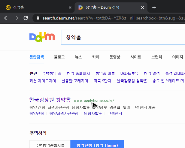 청약홈은 누구나 이용할 수 있도록 만들어진 곳이기 때문에 비밀스러움과는 거리가 있습니다. 고로 검색하면 바로 찾아갈 수 있어요. 하지만 검색하는 것은 귀찮은 감이 있죠? 그러니 주소창에 [applyhome.co.kr]를 입력해서 아파트의 청약하는 사이트로 바로가기를 해주세요.
