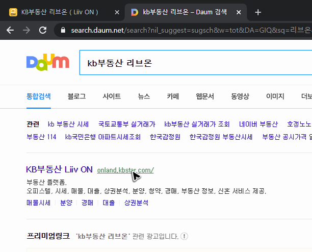 리브온의 경우 부동산을 공부하신다거나, 실질적인 매매를 위해서 정보를 찾는 분들이라면 꼭 한 번쯤 거쳐갈 정도로 덩치(?)가 큰 사이트이기 때문에 검색하면 바로 찾아갈 수 있습니다. 아니면 [https://onland.kbstar.com]를 브라우저에 입력해서 kb의 부동산과 시세를 조회하는 곳으로 이동해도 됩니다.