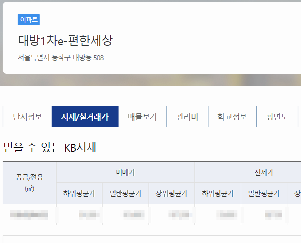 흔한 경우는 아니지만 가끔 kb에서 시세를 제공해주지 않는 경우가 있어요. 이럴 땐 다른 곳을 통해서 정보를 확인하면 됩니다. 저는 주로 네이버 부동산[land.naver.com]을 활용해서 정보를 수집하는 경우가 많아요.