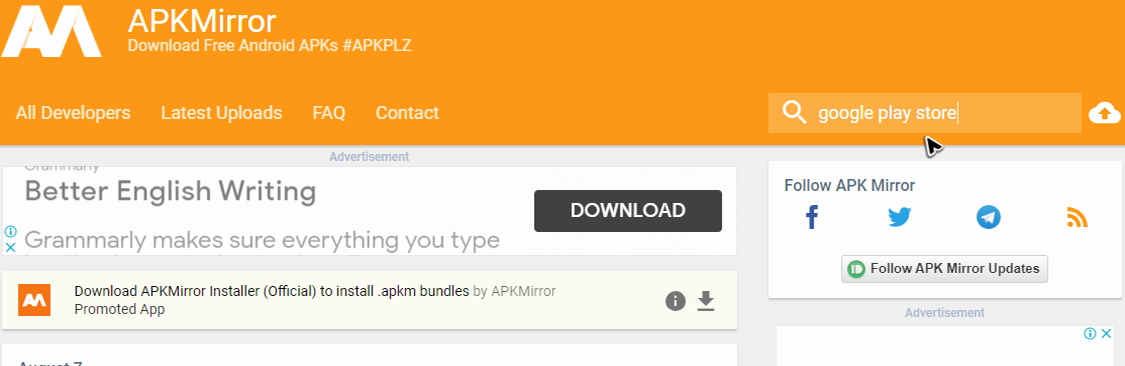처음 얘기한 자료실 하나만 알아두면 apk를 구하고 설치하는데 특별한 문제가 없을 거예요. 그런데 하나의 자료실만 알아두고 있으면 왠지 부족한 느낌이 있습니다. 그래서 자료실 하나만 더 정리하고 글을 끝낼게요. 안전하게 이용할 수 있는 또 다른 자료실은 [apkmirror.com]입니다. 여기도 먼저 얘기한 곳과 마찬가지로 많은 이용자가 있는 곳이고, 검증된 파일이 올라오는 곳으로 유명해요.