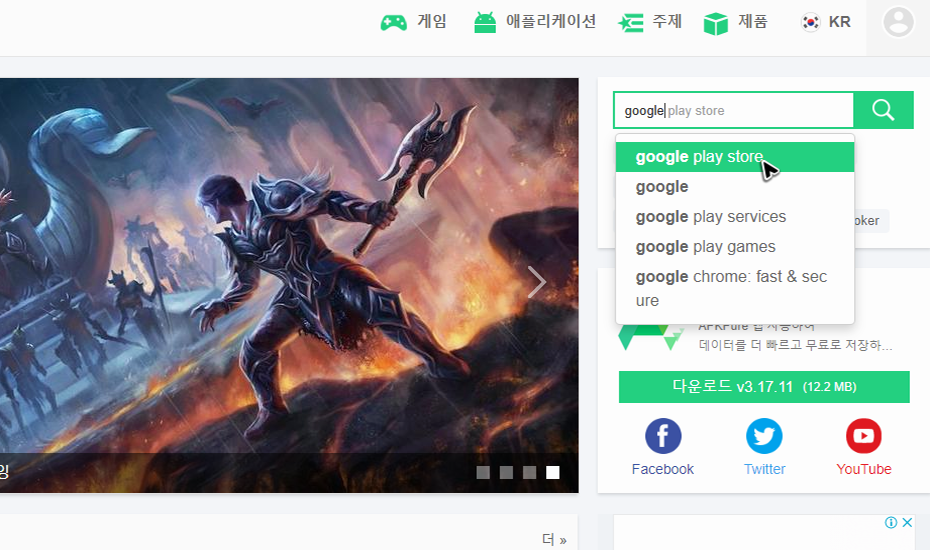 검색하거나 주소를 입력해서 자료실을 방문햇다면, 우측 상단을 확인해주세요. 검색하는 공간이 준비되어 있습니다. 여기에서 필요한 앱 종류를 입력하고 검색을 해주시면 되는데, 저는 play 스토어 apk를 기준으로 얘기를 해볼게요. 참고로 한국어로 검색해도 되지만 구글 플레이스토어는 영어로 입력해석 검색하는 것이 결과가 정확해요.