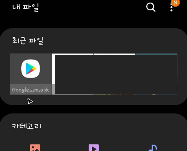 이렇게 기기로 파일을 옮긴 뒤에는 기기와 PC를 분리하면 됩니다. 그리고 스마트기기의 화면을 열어주세요. 이제 옮긴 파일을 찾아서 실행해주면 되는데, 내 파일이라 적힌 어플이나 Download 관리 등 관련된 이름의 어플을 찾아서 실행하면 목록에서 apk를 확인하실 수 있을 거예요.