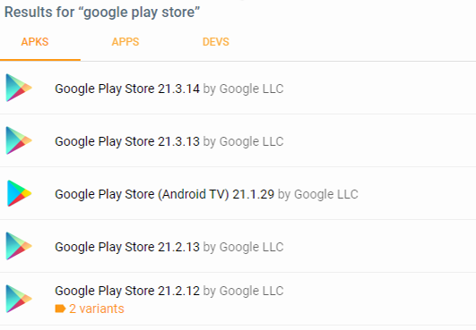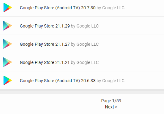 검색하면 관련된 여러 종류의 어플이 나오는 것이 아니라 바로 버전이 정리된 곳으로 연결이 될 거예요. 최신 버전이 필요할 땐 가장 위쪽에 있는 항목을 선택하면 되고, 특별히 찾는 버전의 구글플레이스토어 다운로드 앱이 있을 땐 목록에서 필요한 버전을 찾아서 눌러주시면 됩니다.