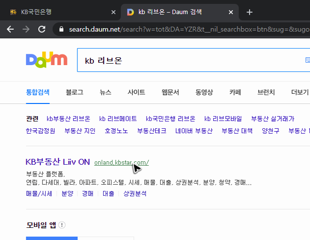 다양한 곳에서 부동산의 정보를 확인할 수 있고, 사이트의 종류에 따라 구성이나 정보에도 차이가 있기 때문에 최소한 두 곳 정도는 확인을 해보는 것이 좋아요. 그리고 먼저 찾아가볼 수 있는 곳은 KB리브온 입니다. 워낙 유명한 곳이라 이미 알고 계신 분들이 많으실 것 같은데, 브라우저 주소창에 [kbstar.com]를 입력하면 빠르게 방문하실 수 있을 거예요. 물론 포털에서 검색해서 방문을 하셔도 됩니다.