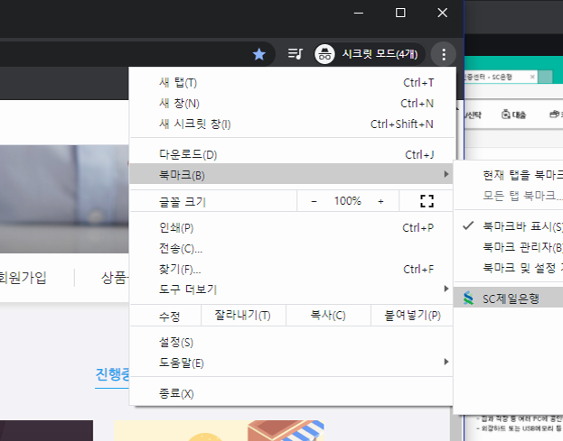 아마 단발적으로 제일은행의 사이트를 찾아오시는 경우는 없으실 거예요. 한 번 이용하기 시작하면 다시 찾아와야 할 일이 생기기 마련입니다. 그런데 재방문을 할 때 또 검색하는 과정이 번거롭게 느껴질 수 있어요. 그러니 기왕 사이트를 뛰운 김에 바로가기를 할 수 있는 설정을 추가해두면 편리합니다.