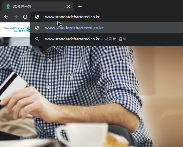 루트를 아는 사람만 찾아갈 수 있는 비밀스러운 사이트가 아니죠? 누구에게나 오픈되어 있는 곳이고, 그냥 포털에서 검색하면 바로 찾아갈 수 있습니다. 다만, 서비스 이용을 위해 검색하는 것이 귀찮을 수 있어요. 이럴 땐 사용하시는 브라우저의 주소창에 [www.standardchartered.co.kr]를 입력하면 조금이나마 더 빠르게 제일은행의 인터넷뱅킹으로 바로가기를 하실 수 있을 것입니다.