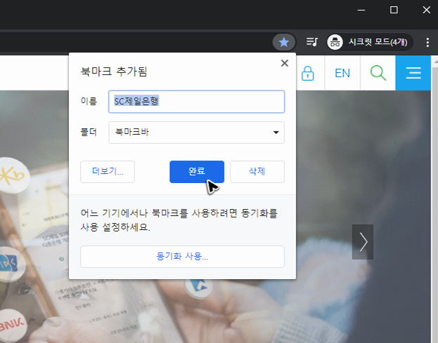 북마크에 추가하는 방법은 이미 알고 계시겠지만, 그래도 아쉬운 마음에 조금만 얘기를 해볼게요. 브라우저에 사이트를 띄운 상태에서 주소창 오른쪽에 보이는 별표 모양의 아이콘을 누르면 됩니다. 그럼 설정 화면이 나오는데, 적당히 설정값을 지정하고 저장을 해주세요.