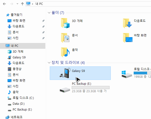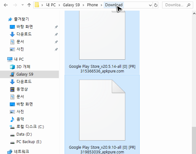 이제 구글의 구글 플레이 스토어 무료설치를 하는 파일을 받았으니, 실행을 해주시면 됩니다. 사용하고 있는 스마트기기에서 자료실을 바로 방문하셨다면 그대로 받은 파일을 탭하여 실행을 해주세요. 그리고 저처럼 PC에서 파일을 받았다면, 기기로 파일을 옮겨주어야 하니, 기기와 PC를 USB로 연결하고 탐색기를 열어주세요.
