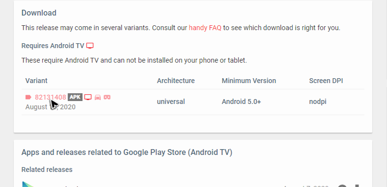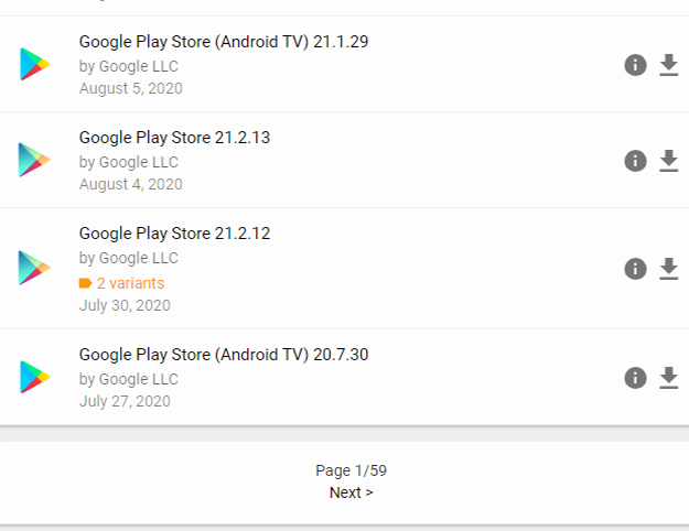 검색 결과가 있는 곳으로 연결이 되면 가장 위쪽의 최신 버전을 선택해서 구글 플레이 스토어 무료설치 업데이트 파일이 있는 곳으로 이동하거나, 목록에서 필요한 버전을 찾아서 클릭을 해주시면 됩니다.
