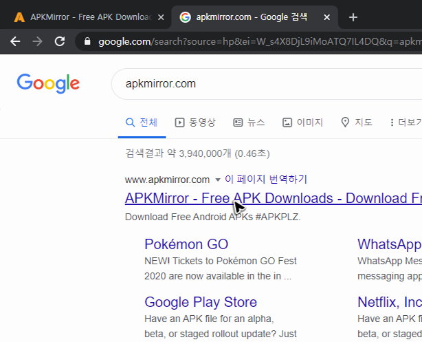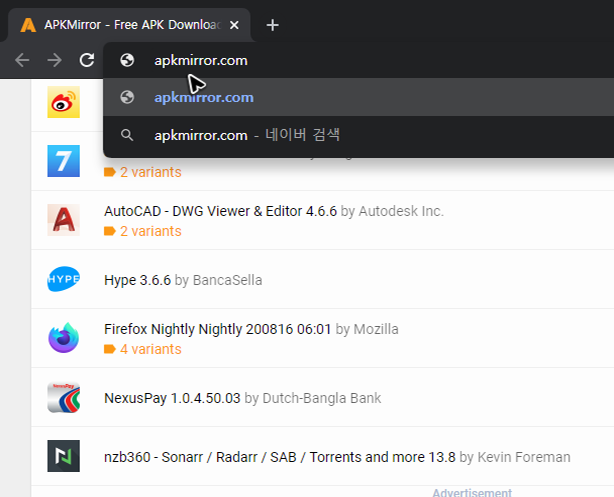 두 번째로 얘기할 자료실 역시 첫 번째 얘기한 곳과 마찬가지로 유명하고 검증된 파일이 올라오는 곳입니다. 주소는 [apkmirror.com]이며 여기도 검색을 통해서 방문하는 것이 가능해요. 그래도 제가 적어둔 주소를 복사하셔서 찾아가는 것이 조금 더 쉽고 편하실 거예요.