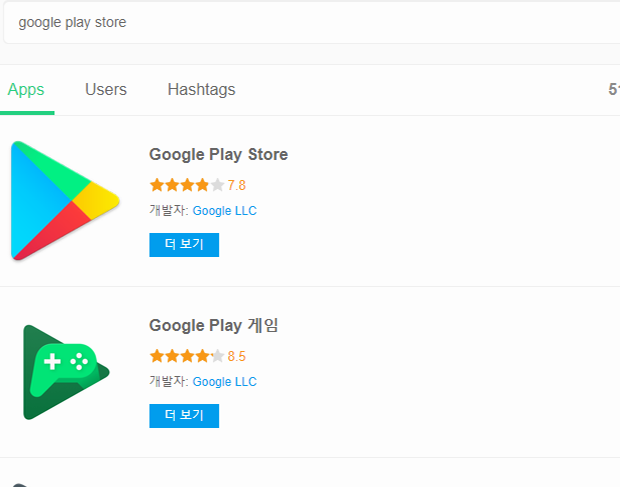 저는 영문으로 검색을 했는덴, 확실히 정확도는 영문으로 검색하는 것이 조금 더 높은 것 같아요. 좌우간, 검색 결과가 있는 페이지로 연결이 되었다면, 목록에 있는 구글 서비스 중에서 필요한 종류를 찾아서 클릭을 해주시면 됩니다. 저는 가장 위쪽에 보이는 google play store를 클릭해볼게요.