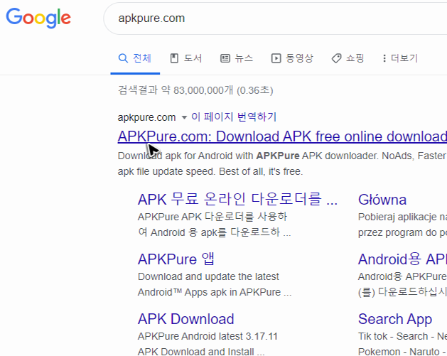 검색해보면 의외로 안드로이드 마켓 파일이 있는 자료실은 다양해요. 하지만 이 중에는 신뢰할 수 없는 파일이 올라오는 곳도 있습니다. 그래서 검증된 파일이 있는 자료실을 선택하는 것이 가장 중요한데, 저는 apk가 필요하면 주로 [apkpure.com]를 애용하고 있어요. 여기는 많은 이용자가 있는 곳이고 충분히 검증된 곳이니, 구글의 플레이와 스토어의 무료설치 및 업데이트 파일이 필요할 때 활용하시면 될 것 같습니다.