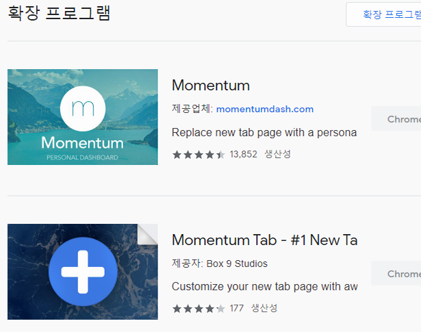 검색해보면 아시겠지만, One Tab이나 Momentum, Wunderlist new tab 등, 필수적으로 다운로드를 해야 한다는 크롬 확장 도구들이 있습니다. 당장에 필요한 확장 도구가 없다면, 다른 분들이 정리해둔 필수 앱을 한 번쯤 살펴보시면 좋을 것 같아요.