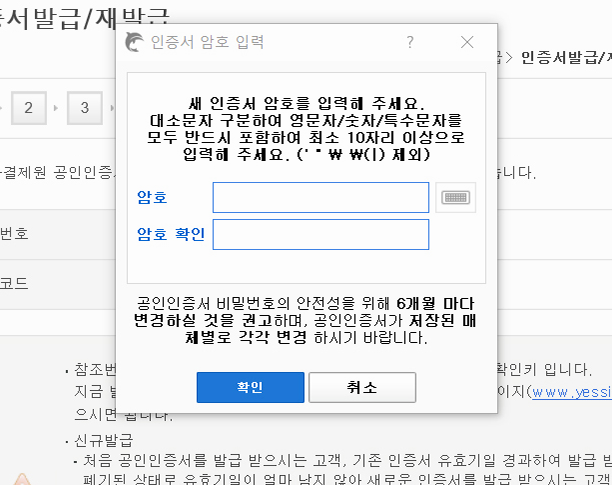 이렇게 정보들을 채우다 보면 어느 순간 발급 마지막 단계에 도달하게 됩니다. 암호를 설정하거나 저장 경로를 선택하는 등의 과정이 있지만, 이 부분 역시 빈칸을 채우고 위치만 선택하면 됩니다. 참고로 USB에 공인인증서를 보관하면 컴퓨터 종류와 무관하게 인터넷을 할 수 있는 컴퓨터에서 금융 업무를 처리할 수 있다는 장점이 있지만, USB 자체의 분실 위험이 있어요.