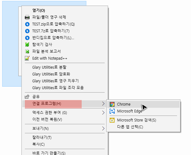 사실 별도로 pdf 뷰어를 다운로드하지 않아도 파일 실행을 하는 것이 가능해요. 그냥 실행해야 할 파일을 마우스 오른쪽 버튼으로 눌러주세요. 그리고 나열되는 메뉴에서 연결 프로그램이라 적힌 메뉴에 커서를 올려주세요. 그 뒤에 사용하고 있는 크롬이나 익스플로러 등의 브라우저를 클릭하면 연동이 되면서 별도로 뷰어 다운로드를 하지 않고 pdf를 실행할 수 있습니다.